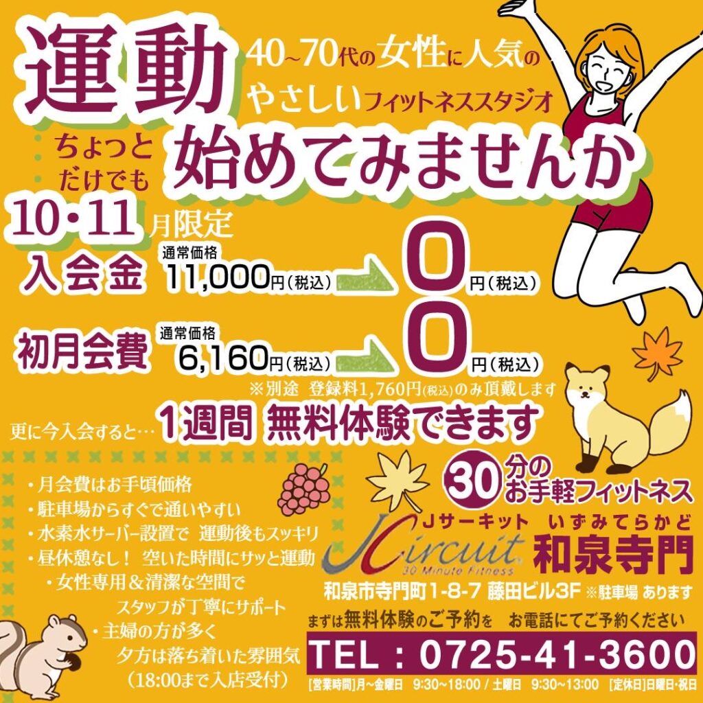 インフォメーション トップページインフォメーションキャンペーン10・11月限定「運動始めてみませんか」キャンペーン 10・11月限定「運動始めてみませんか」キャンペーン 2025年10月9日 キャンペーン 【10・11月限定】「運動始めてみませんか」キャンペーン 入会金 通常価格11,000円(税込)が無料に!! 初月会費 通常価格々6,160円(税込)が無料に!! 1週間 無料体験できますので、まずはご予約を!! TEL:0725-41-3600 前へ一覧へ